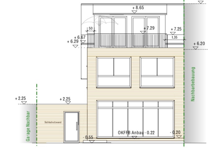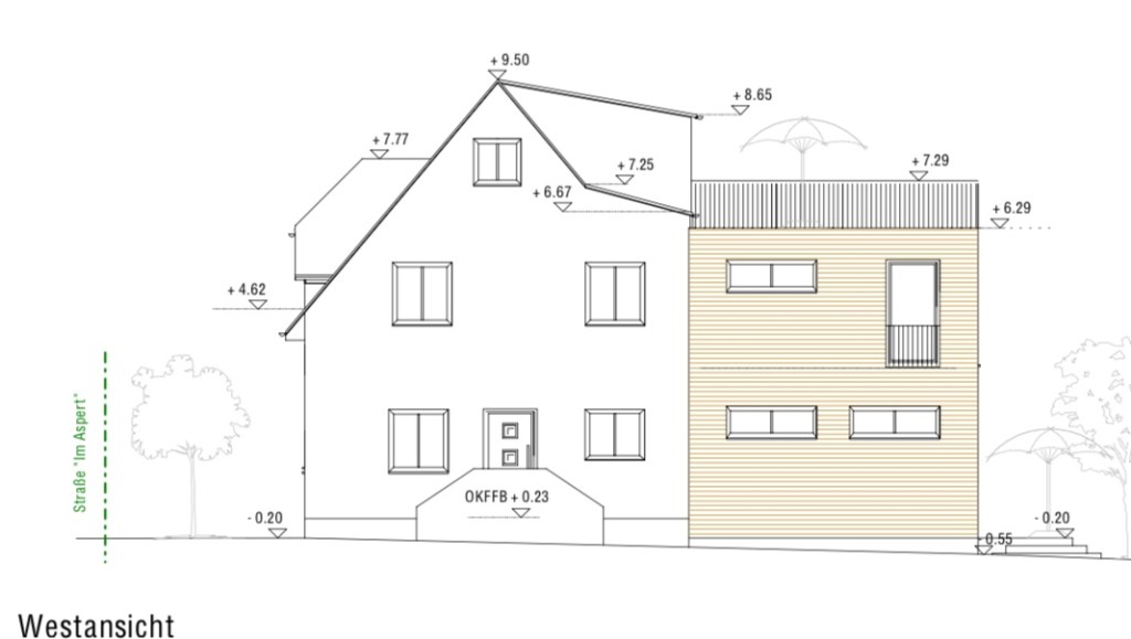 Erweiterung eines zweigeschossigen Wohnhauses mit Keller
